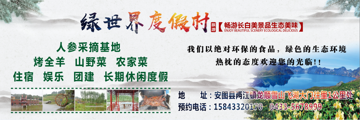 这里拥有最正宗的东北延边农家风格的美食盛宴:烤全羊、烤羊腿、烤鱼、土鸡、蛤蟆、山野菜等等,想体验正宗的老东北风味您就来绿世界山庄,这里不仅在味蕾上满足您,民风、民俗、民居,宁静祥和且淳朴闲淡,还可以《休闲垂钓》,各种鲤鱼和鲶鱼等!节假日去哪儿放松我们烦躁的心灵?带上亲戚朋友,这里是你最享受的选择!