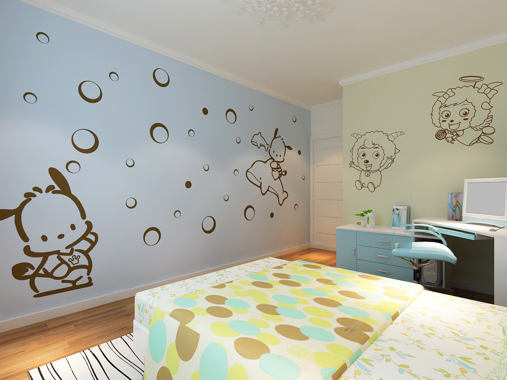 面积较大的墙面不宜采用太过艳丽或过重的颜色,要保持柔和的色调,如粉色、浅蓝色、淡黄色等。这样有利于心情的放松和心里稳定的个性。